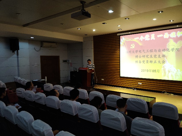 2019年5月16日晚七点,博士研究生党支部召开预备党员转正会议暨党风党纪教育大会。会议在万象城awcsport官网新出楼北230举行,由党支部副书记陈红星同志主持,党支部书记许海燕老师及博士研究生党员9位同志参加。此次会议的议题包括讨论余文涛同志、傅恺宁同志为转正的事宜和“党风党纪微党课”。