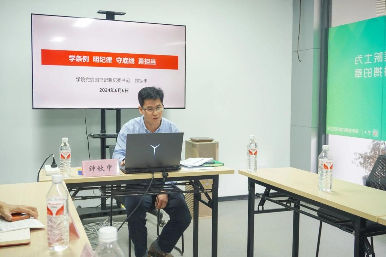 接着,钟钛申老师讲授了题为《学条例 明纪律 守底线 勇担当》的微党课,对党的纪律进行了全面概述,回顾了《条例》修订的背景及要求,对主要内容进行了深入解读,并以“六个一”的方式,总结了学生党员如何贯彻落实《条例》。