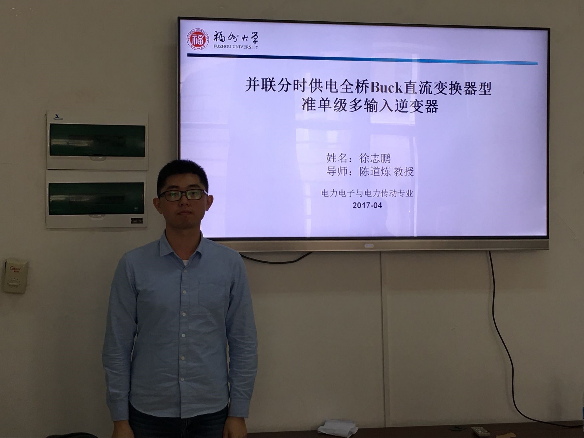 主持人曾璐简单开场过后,报告会就开始了。本次报告会的顺序依次是陈雪峰同学的《双模式控制宽输入电压组合式升压逆变器》、林晃同学的《单相全桥buck型逆变器输入电流低频纹波抑制》、林森同学《一种原边控制LLC谐振LED驱动电路的设计》、李银宝同学的《一种高效同步整流有源钳位缓冲全桥DC-DC电路》 以及汪达鑫同学的《差动Boost直流变换器型逆变器输入电流低频纹波抑制》、许俊阳同学的《多绕组同时-分时供电全桥Boost型准单级多输入逆变器》、徐志鹏同学的《并联分时供电全桥Buck直流变换器型准单级多输入逆变器》、汤云东同学的《肿瘤磁纳米热疗关键技术的研究》。